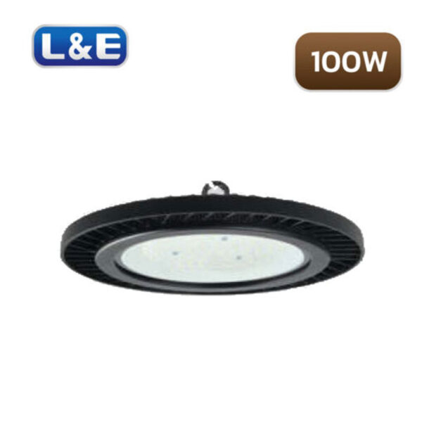 โคมไฟ HIGH BAY 100W L&E EHBL251 เหมาะสำหรับใช้ติดตั้งเพื่อใช้ส่องบริเวณพื้นที่ที่มีความสูง โคมไฮเบย์ LED 100วัตต์ เทียบเท่าโคมที่ใช้หลอดเมทัลฮาไลด์ 150วัตต์ โคมไฮเบย์ เหมาะสำหรับใช้ติดตั้งในโรงงานอุตสาหกรรมต่างๆ โรงรถ คลังสินค้า และพื้นที่ที่ต้องการแสงสว่างจากที่สูง