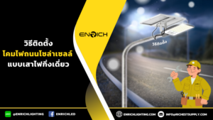 วิธีติดตั้งโคมไฟถนนโซล่าเซลล์ แบบเสาไฟกิ่งเดี่ยว โคมถนนโซล่าเซลล์ เป็นอุปกรณ์ส่องสว่างที่ได้รับความนิยมอย่างมากสำหรับงานภายนอก ไม่ว่าจะเป็นถนนภายในหมู่บ้าน โรงงาน ลานจอดรถ หรือพื้นที่สาธารณะ ด้วยจุดเด่นที่ ไม่ต้องเดินสายไฟ ใช้พลังงานแสงอาทิตย์ และช่วยประหยัดค่าไฟในระยะยาว บทความนี้จะอธิบาย วิธีติดตั้งโคมไฟถนนโซล่าเซลล์แบบเสาไฟกิ่งเดี่ยวอย่างละเอียดทุกขั้นตอน ตั้งแต่การประกอบแผงโซล่าเซลล์ไปจนถึงการติดตั้งเข้ากับเสา [...]